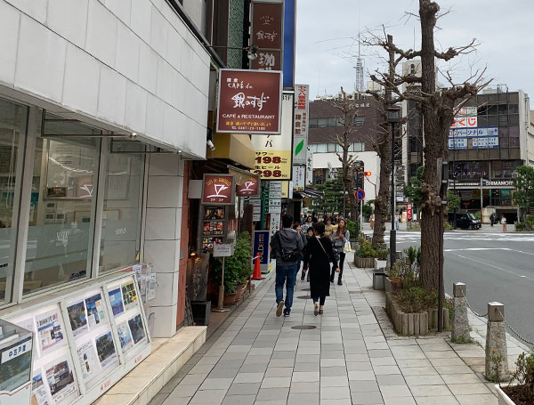 You will see Sumitomo Mitsui Bank. Proceed straight ahead.