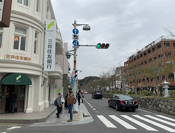 You will see the Kamakura Shrine gate. Proceed straight ahead.